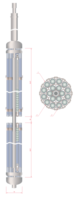 | Топливо | диоксид урана, низкообогащённый 235U (обогащение от 1,8% до 3,6%) |
