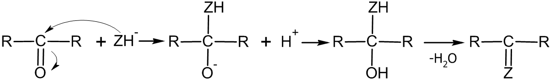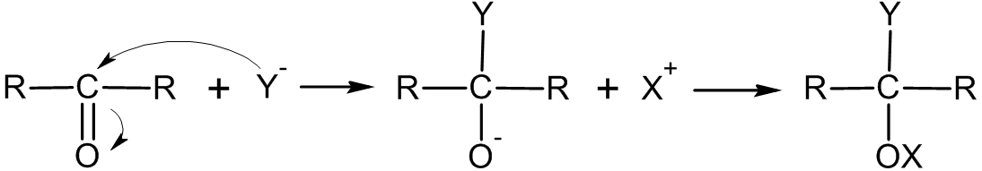 Hуклеофильное присоединение по связи С=O очень распространено, что имеет большое практическое промышленное и лабораторное значение[3].