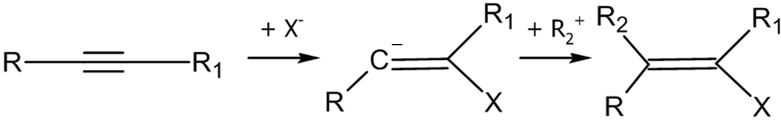 Реакции нуклеофильного присоединения более распространены для тройных, чем для двойных связей[1].