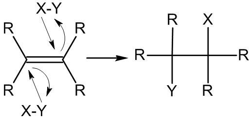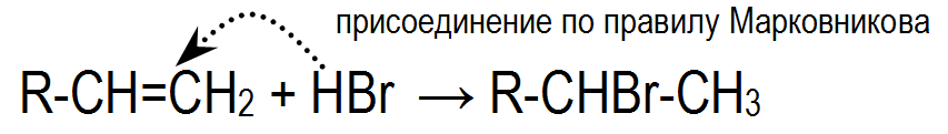 Общий вид реакций присоединения по двойной связи углерод-углерод: