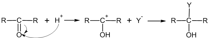 Связи углерод-гетероатом очень полярны, при этом на углероде формируется положительный заряд, а на гетероатоме — отрицательный. Соответственно, первоначальная атака может идти как по атому углерода (электрофильная атака), так и по гетероатому (нуклеофильная атака). В подавляющем большинстве случаев реакции присоединения по кратной связи углерод-гетероатом носят нуклеофильный характер[2].