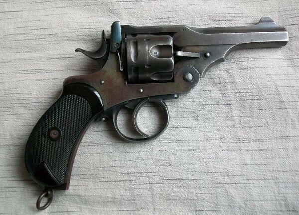 - Mk II: отличие от Mk I в ударнике и форме рукоятки. Дверцы барабана изготавливались из закалённой стали. Длина ствола — 100 мм. На вооружение принят 21 мая 1895 года[38].