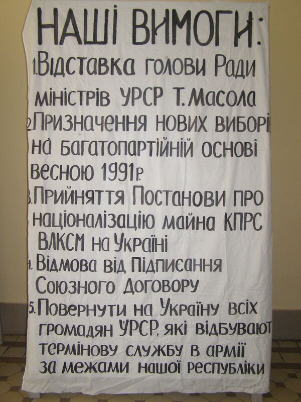 2 октября 1990 года более 100 студентов установили палаточный городок и начали голодовку на площади Октябрьской революции (теперешний майдан Незалежности). Большинство составляли студенты из Киева, Львова и Днепропетровска.