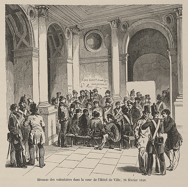 Следуя революционной традиции, они отправились в Ратушу и провозгласили там новое правительство. Вслед за тем в Ратушу явилось из Бурбонского дворца и правительство «Насьоналя». В результате группа «Насьоналя» и группа «Реформы» достигли соглашения: список «Насьоналя» был расширен четырьмя новыми министрами, включая Луи Блана и Альбера, ставшими министрами без портфеля, и Ледрю-Роллена, получившего пост министра внутренних дел, и остались в Ратуше. Пост префекта парижской полиции был утверждён за другим соратником Ледрю-Роллена, Коссидьером, который ранее добыл его явочным порядком: он попросту явился в префектуру в окружении вооруженных республиканцев — его товарищей по тайному обществу и объявил себя префектом. Примыкавший к кругу «Реформы» знаменитый физик и астроном Франсуа Араго, бывший депутатом парламента, получил в новом правительстве должности военного и морского министра (в списке Ледрю-Роллена он намечался министром почт).