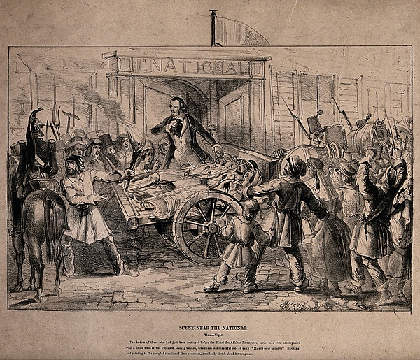 Толпа разъярённого народа с криками и ругательствами следовала за телегой. На бульварах рубили деревья и переворачивали омнибусы, ставя их в баррикады. Восстание разгорелось с новой силой, теперь уже открыто выдвигался лозунг: «Да здравствует Республика!». Утром на стенах появилось воззвание, составленное в «Реформе» (газете радикальных республиканцев) и гласившее: «Луи-Филипп приказал нас убивать, как это сделал Карл X; пусть он и отправляется вслед за Карлом X».
