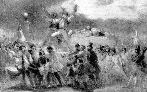 В буржуазных кварталах Парижа разнесся слух, что социалисты хотят произвести переворот, ликвидировать Временное правительство и поставить у власти коммунистическое правительство из Луи Блана, Бланки, Кабе и Распайля.