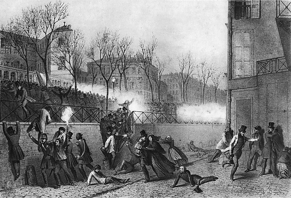 Настоящее восстание началось в ночь на 23 февраля, когда баррикадами покрылись рабочие кварталы Парижа (традиционно настроенные республикански). Как подсчитали позднее, в столице возникло более полутора тысяч баррикад. Толпы рабочих врывались в оружейные лавки и завладевали оружием. Луи-Филипп не желал использовать для подавления восстания войска, так как армия была непопулярна и он опасался, что, увидев, что король пошел по стопам Карла Х, Национальная гвардия поддержит восстание и произойдет повторение событий 1830 года. Поэтому он стремился прекратить волнения силами самой Национальной гвардии. Однако национальные гвардейцы, выходцы из буржуазных кварталов и сами сторонники избирательной реформы, наотрез отказались стрелять в народ, а часть их даже перешла на сторону повстанцев. В результате волнения только усиливались. Основными требованиями, объединившими всех недовольных парижан, были отставка Гизо и проведение реформ.