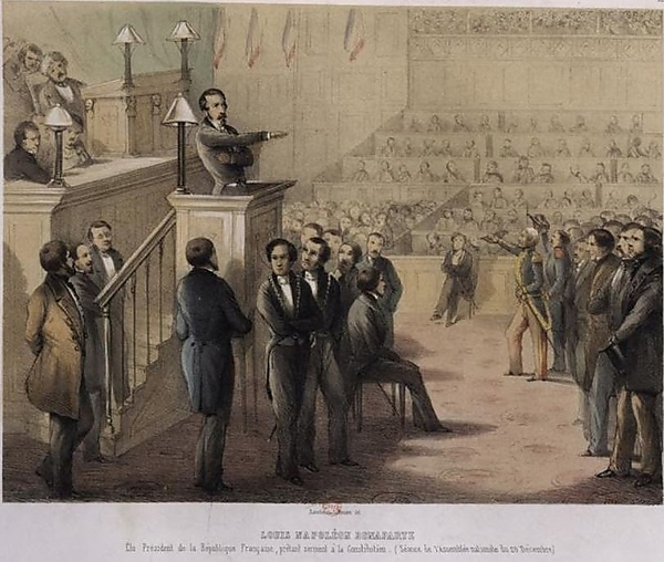 Однако эти карты смешало появление на сцене тёмной лошадки с громким именем — принца Луи Наполеона Бонапарта, племянника императора Наполеона, также выставившего свою кандидатуру. Ему обещали свою поддержку представители так называемой «партии порядка» в лице «Комитета улицы Пуатье», объединявшего лидеров орлеанистов (Тьер), легитимистов (Берье) и клерикалов (Монталамбер) — убеждённый республиканец Кавеньяк казался для них недостаточно консервативным. Эта партия пользовалась нарастающей поддержкой у буржуазии, испуганной рабочим движением и стремительно правевшей. За племянника Наполеона, широко прибегавшего к социальной демагогии, отдали свои голоса также многие рабочие — это было протестное голосование в пику июньским победителям. Голосовала за него и мелкая буржуазия, разочарованная господством крупной и находившаяся под влиянием «наполеоновского мифа». Но основным фактором оказались голоса крестьян, ненавидевших республиканцев за 45-сантимный налог и вспоминавших эпоху Империи как свой «золотой век» — обстоятельство, которое совершенно не учитывали политики и журналисты в городах.