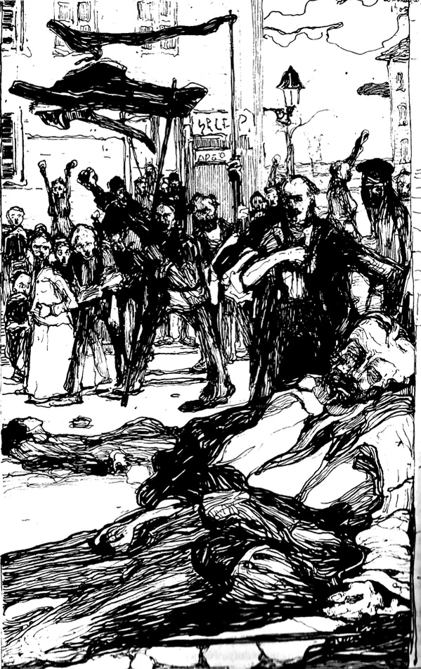 Вслед за погромами весны-лета 1905 года в Мелитополе, Симферополе, Житомире, после опубликования царского манифеста 17 октября 1905 г во многих городах черты оседлости прошли мощные антиправительственные манифестации, в которых приняло активное участие еврейское население. В результате столкновения революционных и патриотических демонстраций начались еврейские погромы, после присоединения люмпенов превратившиеся в обычный грабёж еврейского имущества[66]. Крупнейшие погромы имели место в Одессе (погибло свыше 400 евреев), в Ростове-на-Дону (свыше 150 погибших), Екатеринославе — 67, Минске — 54, Симферополе — свыше 40 и Орше — свыше 100 погибших.