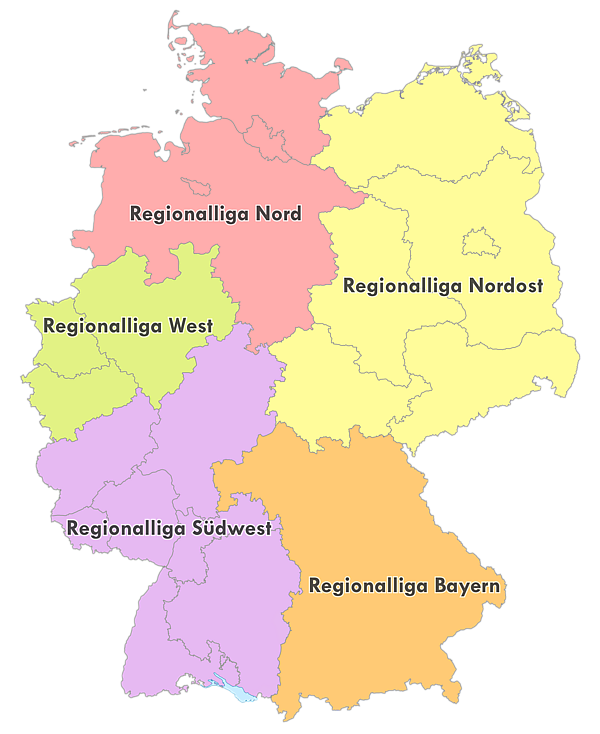 - клубы из региона Северного Рейна-Вестфалии, которые не были частью Региональной лиги «Север» до 2008 года, помечены звездочкой — *.