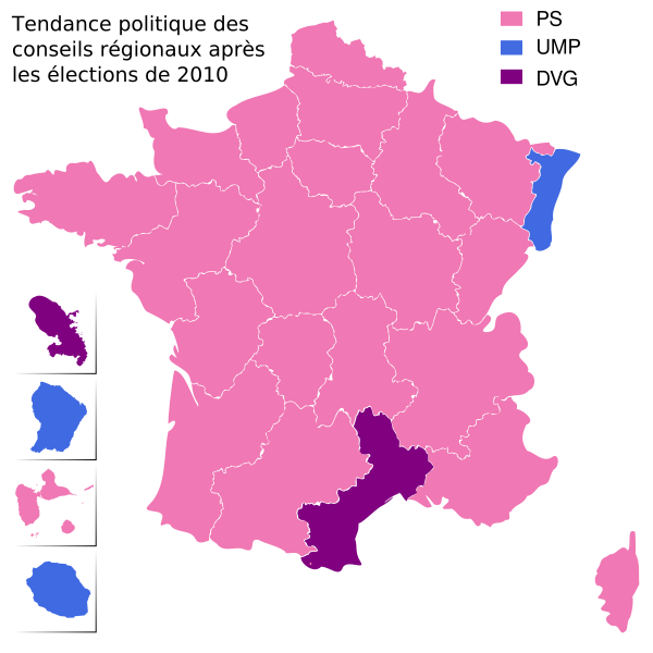 Выборы привели к победе французской Социалистической партии (PS) и её союзников, которые в настоящее время имеют большинство в 21 из 22 регионов Франции. [2] За Союзом за народное движение остался только регион Лангедок — Руссильон.