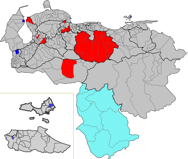 Античавистская оппозиция часть своих кандидатов определила с помощью переговоров, часть через праймериз. Так, в первичных выборах в Маракайбо участвовало около 180 000 человек, что составляет почти половину от голосов полученных оппозицией на последних парламентских выборах. В итоге кандидат партии «Новое время» адвокат Эвелинг Трехо де Росалес, супруга Мануэля Росалеса, победила с 70% голосов депутата городского совета Хуана Пабло Гуанипу из партии «За справедливость».[10] Прошли праймериз и в Миранде (штат Сулия), победителем голосования, в котором приняло участие 11 798 человек (примерно 60 % от голосов за оппозицию на сентябрьских выборах), стал бывший мэр Вилмер Окендо, генеральный секретарь партии «За социал-демократию»), набравший 46,48 % и опередивший Уинтона Медину из Демократического действия.[11] Ряд кандидатов были определены по итогам переговоров, в частности, MUD без праймериз согласился поддержать губернатора штата Амасонас Либорио Гуарулья от партии «Отечество для всех», которая в свою очередь сняла своего кандидата в губернаторы штата Гуарико Франко Герратана в пользу Карлоса Проспери. В то же время Герратана остался в списках.