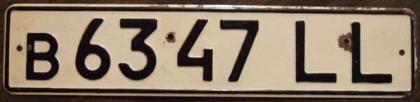 | Передний автомобильный номерной знак 1959—1980 годов | Задний автомобильный и мотоциклетный и мопедный номерной знак 1959—1980 годов[3] | Номерной знак автомобильных прицепов 1959—1980 годов | Военный автомобильный номерной знак (передний) 1959—1993 годов | Военный автомобильный номерной знак (задний) 1959—1993 годов | Тракторный номер 1965—1980 годов | Номер тракторных прицепов 1965—1980 годов | Дипломатический номер (передний) 1967—1980 годов | Дипломатический номер (задний) 1967—1980 годов |