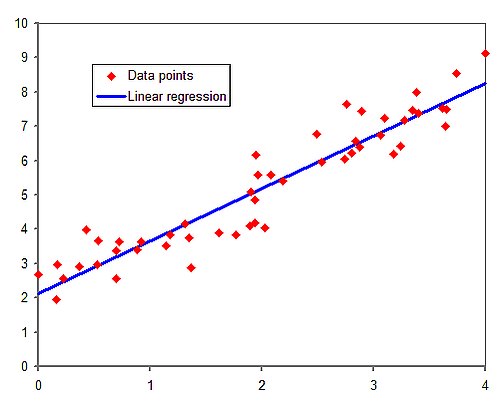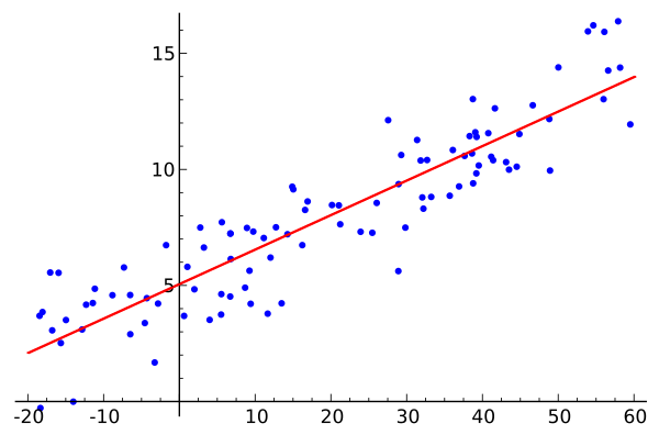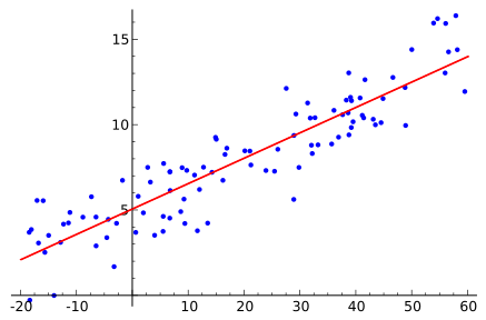 Наиболее распространённой формой регрессионного анализа является линейная регрессия, в которой определяется линия (или более сложная линейная комбинация), наилучшим образом соответствующая данным согласно некоторому математическому критерию. Например, метод наименьших квадратов находит единственную прямую (или гиперплоскость), минимизирующую сумму квадратов отклонений между истинными данными и этой линией (или гиперплоскостью). Такой подход позволяет оценить условное математическое ожидание (или среднее значение по совокупности) зависимой переменной при заданных значениях независимых. Существуют и другие методы регрессии — например, квантильная регрессия или анализ необходимых условий[3] — для оценки альтернативных характеристик, а также непараметрическая регрессия для работы с более широким классом нелинейных моделей.