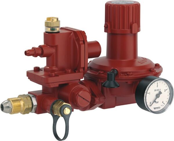 Двухступенчатые регуляторы давления сочетают свойства РД первой и второй ступеней и предназначены для снижения высокого давления паровой фазы СУГ, отбираемой из резервуарных установок, а также автоматического поддержания низкого давления в заданных пределах независимо от колебаний входного давления, изменений расхода газа и температуры. Две ступени обеспечивают более стабильное выходное давление по сравнению с одноступенчатыми регуляторами. Двухступенчатые РД также оснащаются встроенными системами защиты от повышенного выходного давления.