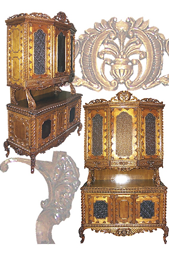 В XVII веке с развитием барокко дворцовая мебель (Италии и Южной Германии; шкафы, кабинеты, кабинеты-секретеры с откидной доской для письма), активно использующая архитектурные мотивы (витые колонны, разорванные фронтоны), а также скульптурную резьбу и красочную мозаику, обретает живописную пластику форм, пронизанных динамикой криволинейных очертаний и беспокойной игрой светотени, порой буквально сливающихся с декором интерьера.