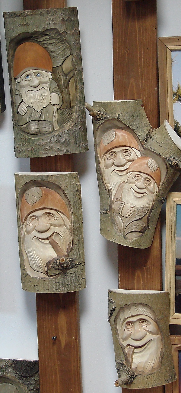 - резьба бензопилой (выполнение преимущественно скульптурной резьбы при помощи только бензопилы)