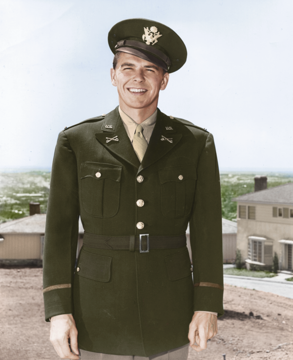 14 января 1943 года Рейган был произведён в звание первого лейтенанта и был отправлен служить в англ. Provisional Task Force Show Unit в городе Бербанк[37]. Отбыв там службу, он вернулся обратно в Первый кинопроизводственный отдел. 22 июля 1943 года Рейган был повышен в звании до капитана[38].