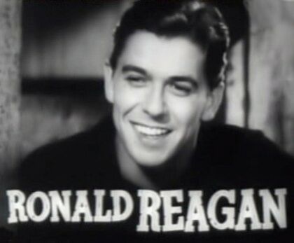 Радио и кинематограф: Рейган начал артистическую карьеру в качестве радиоведущего. После окончания колледжа в 1932 году он переехал в штат Айова, где работал на многих маленьких радиостанциях[24]. Университет Айовы нанял Рейгана освещать по радио игру футбольной команды «Айова Янкиз». За каждый репортаж он получал по 10 долларов[24]. Позднее Рон говорил, что время, когда он работал спортивным комментатором, было лучшим в его жизни[25]. Позже он поступил на должность диктора радиостанции WOC в городке Давенпорт в Айове, где получал уже 100 долларов в месяц. Благодаря своему голосу он приглашён на радиостанцию WHO в Де-Мойне, где комментировал в прямом эфире матчи бейсбольной команды Чикаго Кабс, находясь на стадионе[24][26].