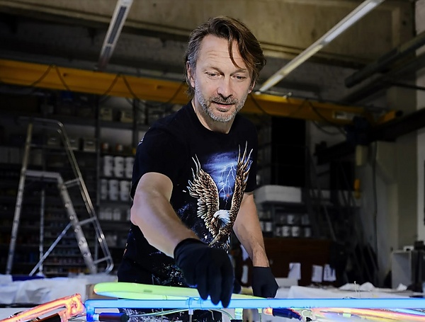 Уникальный стиль художника рождается из синтеза монументальной абстракции и скульптурных композиций, созданных из найденных предметов. Важную роль в его творчестве играют такие материалы, как неон и светоотражающие элементы.