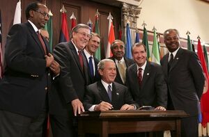В отличие от многих демократов-членов Палаты представителей, Рейнджел был известен поддержкой соглашений о свободной торговле.[44][74] Он был лоббистом закона об оказании помощи экономикам стран Чёрной Африки, принятого, несмотря на противодействие профсоюзов, текстильной промышленности и Кокуса чёрных конгрессменов, в 2000 году[74] и продлённого на 10 лет в 2004 году. Это впервые обеспечило стимулы для торговли США с африканскими странами к югу от Сахары.[27]