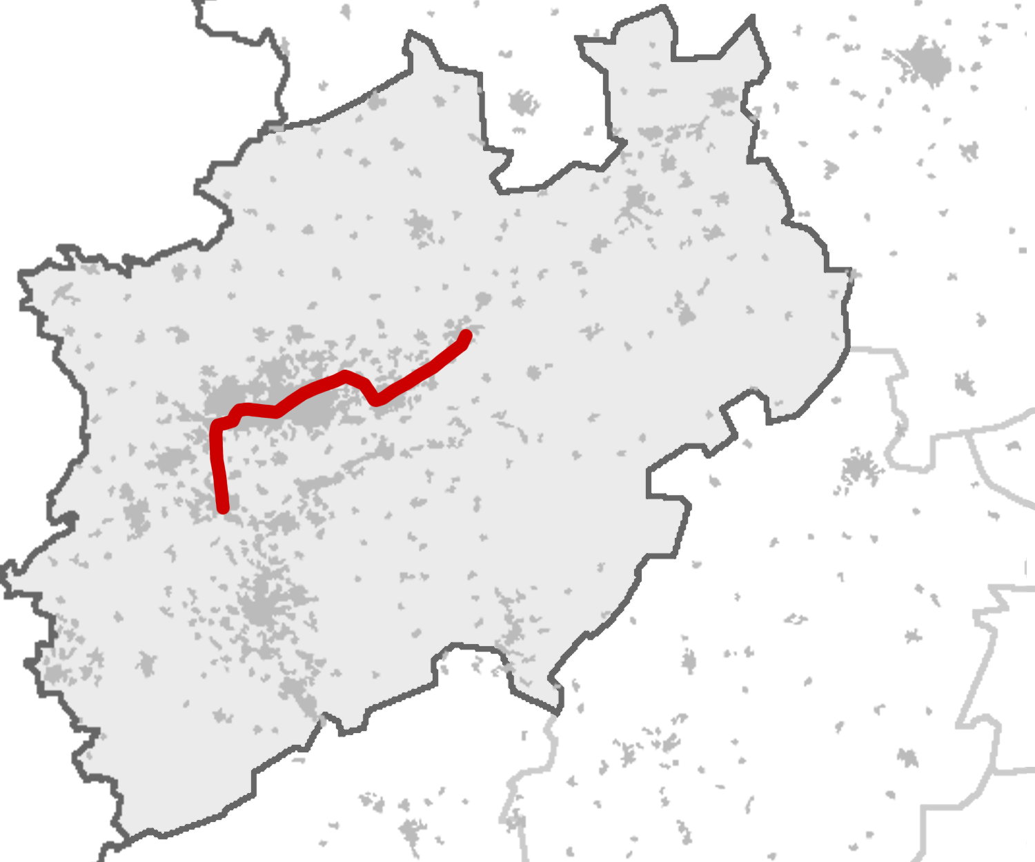 - участок железной дороги Кёльн-Дуйсбург от Дуйсбурга до Дюссельдорфа.