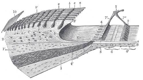 Гистологически перепонка состоит из двух слоев плоского эпителия, разделённых базальной пластинкой. Его структура предполагает функцию, заключающуюся в транспортировке жидкости и электролитов.