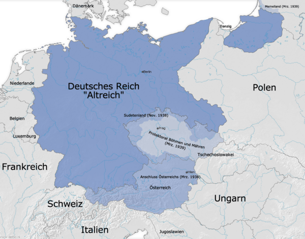 - «Старый рейх» (нем. Altreich) — территория Германской империи в границах 1938 года до присоединения Австрии. К «старому рейху» относилась присоединённая к Германии Саарская область, но не относились аннексированная в 1938 году Судетская область и присоединённый в 1939 году Вольный город Данциг, из вышеперечисленных — период перед третьим рейхом.