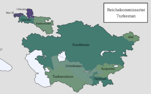 В изначальном плане, представленным Розенбергом Гитлеру в начале апреля 1941 года, для лишения рейхскомиссариата Московия доступа к морю, было предложено создать рейхскомиссариат Туркестан. В него предполагалось включить территории Туркменской ССР, Казахской ССР, Узбекской ССР, Таджикской ССР и Киргизской ССР. Однако Гитлер отверг этот план, сочтя рациональным отложить решение вопроса о восточных областях СССР на будущее и сконцентрироваться на европейской части Союза.