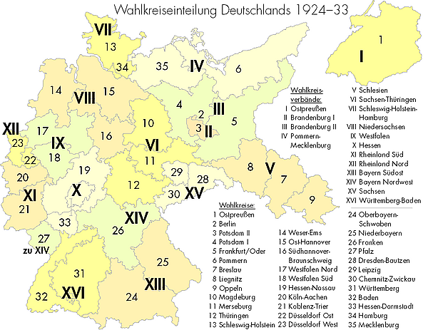 - союзы избирательных округов (Wahlkreisverband) соответствовали провинциям и средним землям;