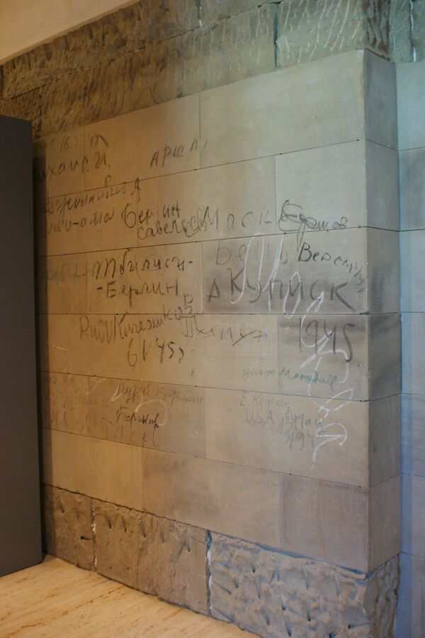 Внутренние стены были облицованы белыми панелями, которые скрыли следы боёв, а также автографы советских солдат, тем самым сохранив их для будущего.