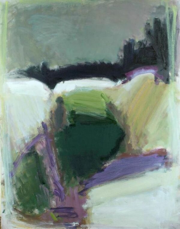 Полотно выполнено в вертикальном формате и относится к направлению абстракционизма. Изображение построено на градациях цвета от белого до чёрного с включением коричневого, серого, зелёного и синего оттенков, что придаёт работе сложную цветовую гамму. В верхней части на светлом фоне размещена беспредметная форма чёрного цвета, а в центре — ещё одна беспредметная форма зелёного оттенка. Вокруг неё широкими мазками расходятся штрихи и полосы различных размеров и цветов, формируя динамичную композицию в духе беспредметного искусства.