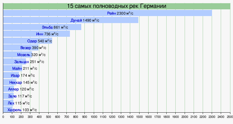 Список наиболее протяжённых рек Германии[7]: