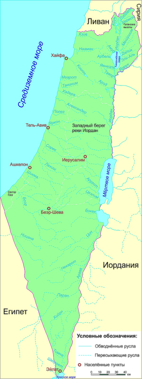 - ↑ 1 2 3 4 5 6 7 8 9 10 11 12 13 14 15 16 17 18 19 20 21 22 23 24 25 26 27 28 29 30 31 32 33 34 35 36 37 38 39 40 41 42 43 44 Израиль. Палестинские территории. Общегеографическая карта. Масштаб 1:500 000. Год: 2005. Издание: М.: ФГУП ПКО Картография. Страниц: 1. ISBN 5-85120-233-5
