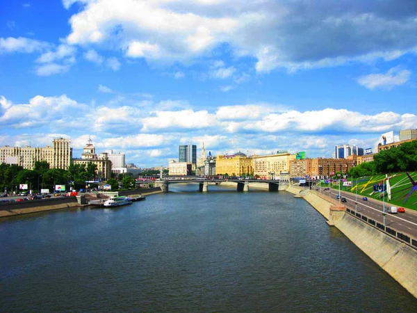 Самая большая и наиболее знаменитая река столицы — Москва. В пределах города её длина составляет около 80 км[9]. Исток расположен в Смоленской области, в месте под названием Москворецкая лужа. В столице река имеет около 70 притоков[10]. Однако большая их часть заключена в водосборные коллекторы. Самый узкий участок водотока, шириной 120 метров, расположен напротив Кремля, самый широкий — возле Лужников. Берега укреплены бетонными конструкциями. Через реку проходят более 20 мостов. Всехсвятский — первый каменный мост, построенный в 1692 году[11][12][13].
