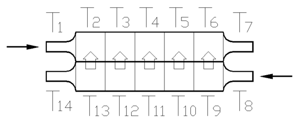 Пример: в рекуперативном противоточном теплообменнике вступили в тепловое взаимодействие две жидкости: вода с температурой +20°С и масло с температурой +91°С. В результате работы теплообменника у воды будет температура +90°С , а у масла +21°С.