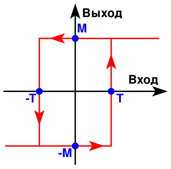 срабатывание — минимальное значение воздействия (электрического сигнала) на входе, при таком его возрастании, что релейный элемент изменяет свое состояние и одновременно воздействует на выходе в соответствии с релейной характеристикой;
