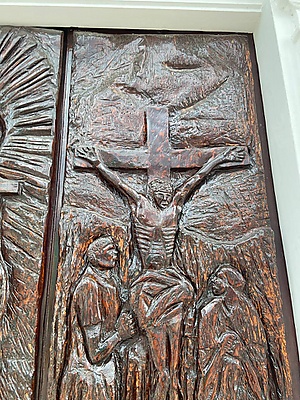 Резные двери Собора Непорочного Зачатия Пресвятой Девы Марии - Англиканство — вторая по численности христианская конфессия (6,1% населения). Сейшельские острова образуют отдельную епархию в составе Англиканской церкви провинции Индийского океана.
