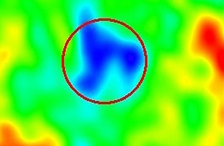 В 2004 году спутник WMAP составил карту микроволнового излучения Вселенной, рождённого через 380 000 лет после «Большого взрыва». На карте ясно просматривалось ярко-синее пятно приблизительно на 70 мкК холоднее, чем средняя температура реликтового излучения (около 2,7 К). По одной из версий, пятно могло произойти из-за неоднородной плотности раннего газа Вселенной. Это открытие поставило под сомнение постулаты космологической модели. В заключении исследователи сослались на несовершенство оптики и ошибки обработки.