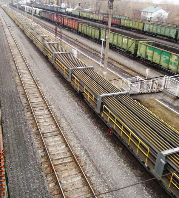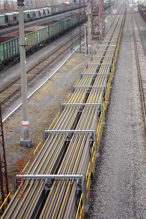 Рельсовые плети перевозятся рельсовозными составами без скрепления плетей со шпалами.