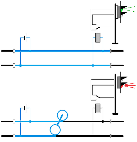 - нормальный — рельсовая цепь свободна от подвижного состава;