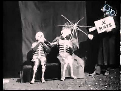 Мужчина подсаживается на лавочке к девушке и пытается с ней познакомиться. Вдруг некто наводит на них рентгеновский аппарат, и они превращаются в скелеты. Не замечая этого, мужчина-скелет продолжает приставать к девушке-скелету, целует ей руки, пытается прижать к себе. Действие рентгеновских лучей прекращается, и герои опять превращаются в людей. Мужчина продолжает приставать к девушке и говорит ей на ухо что-то. Она резко встаёт, а он падает на колени, прося прощения. Женщина даёт мужчине пощёчину и удаляется. Убитый горем мужчина остаётся рыдать на лавочке.