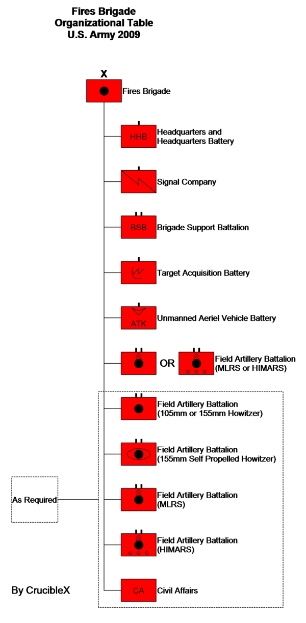 Артиллерийские бригады (Field Artillery Brigade (до 2014 Fires Brigade)) — подразделения оснащённые реактивными системами залпового огня M270 MLRS и HIMARS. Занимаются также информационными операциями и нелетальным воздействием.