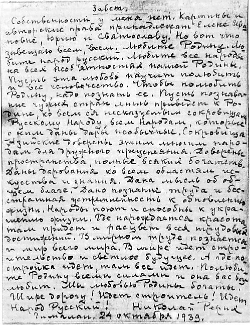 Также духовным напутствием для Рериха стали слова о. Иоанна Кронштадтского, часто посещавшего дом родителей Рериха: «Не болей! Придётся для Родины много потрудиться»[33].