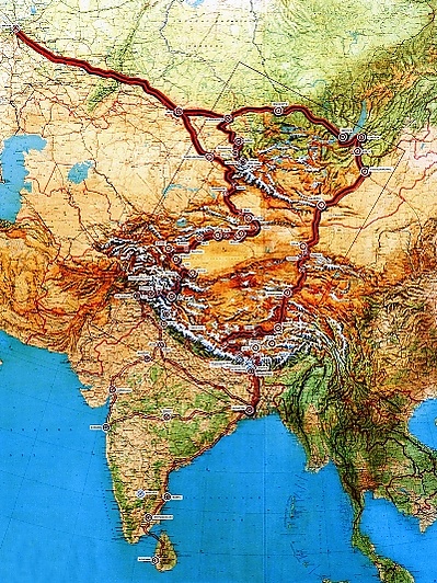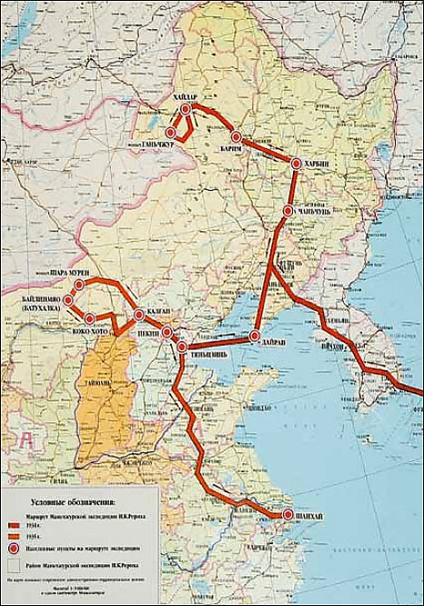 2 декабря 1923 года Н.К. Рерих с семьёй прибывает из Парижа в Индию, где налаживает культурные и деловые связи. Рерихи преодолевают свыше трёх тысяч километров, посещая Бомбей, Джайпур, Агру, Сарнатх, Бенарес, Калькутту и Дарджилинг (Сикким). В Сиккиме Рерихи определяют будущий маршрут экспедиции и в сентябре 1924 года Рерих с младшим сыном совершает поездку в Америку и Европу для оформления необходимых разрешений и документов (официально экспедиция была заявлена как американская). После Европы, в начале 1925 года, Рерих посещает Индонезию, Цейлон, Мадрас. И далее начинается основной этап экспедиции, который проходил через Кашмир, Ладак, Китай (Синьцзян), СССР (с заездом в Москву), Сибирь, Алтай, Монголию, Тибет, по неизученным областям Трансгималаев. Экспедиция продолжалась до 1928 года.