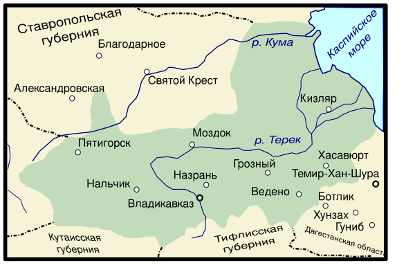 В 1860 году военное управление Северным Кавказом было упразднено и по указу императора Александра II в восточной части Северного Кавказа была создана Терская область, в состав которой вошли Чеченский, Ичкерийский, Ингушский и Нагорный округа.