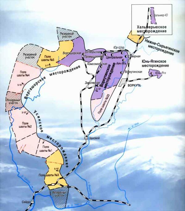 - Барит. Самым крупным является Хойлинское месторождение, расположенное около города Воркуты. Запасы его около 40 млн тонн. Аналогичное Пальнинское месторождение обладает запасами около 17 млн тонн.