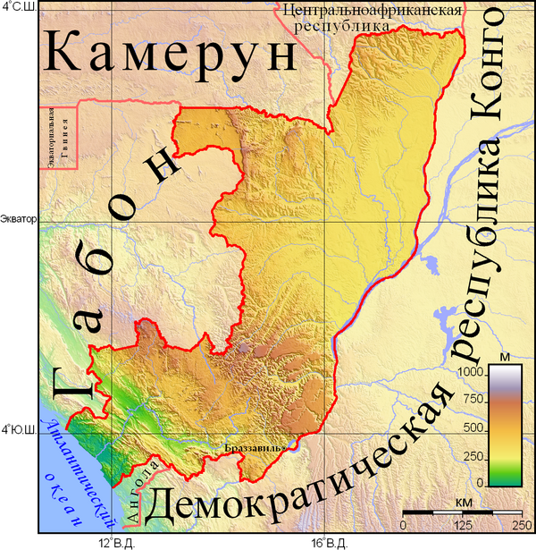 Государство в Центральной Африке. Граничит с Габоном, Камеруном, Центральноафриканской Республикой, Демократической Республикой Конго и Анголой, имеет выход к Атлантическому океану.