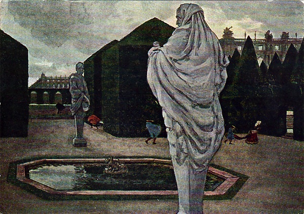 Особенное значение XVIII веку придавал художник Виктор Борисов-Мусатов — выразитель символизма в изобразительном искусстве и один из первых художников-ретроспективистов рубежа веков, поэтизировавший быт русских усадеб и образы садово-парковой культуры XVIII столетия. Критики-современники называли его «мечтателем ретроспективизма». Борисов-Мусатов в целом являлся художником одной темы — быта старинной русской дворянской усадьбы. В поисках вдохновения он посещал усадьбы Слепцовка, Зубриловка, Введенское. Его ретроспективные произведения отражали не просто виды русской старины, но поэтизированный образ жизни людей XVIII века, полной «драматических событий, грусти, тоски, радости и счастья». В число наиболее известных ретроспективистских работ художника вошли картины «Осенний мотив», «Гобелен» и «Водоём» (1902, темпера, ГТГ). Последняя считается вершиной творчества художника, изменившая в 1903 году отношение к Борисову-Мусатову всего художественного мира. Искусствовед Алла Русакова называла картину произведением, которое определило творческие поиски художников своего времени[20][21].