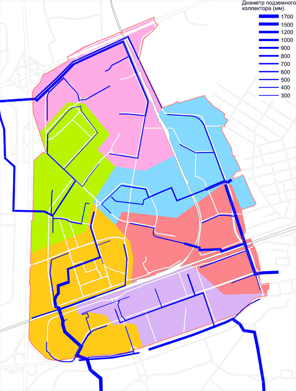 В соответствии с рельефом местности и сложившейся схемой водоотведения на территории городского округа Реутов выделено два основных канализационных бассейна. В первый бассейн основного коллектора диаметром 500—800 мм входит основная часть жилой застройки, микрорайоны 1, 2, 3-3А, часть 4, 5, 6, 7, 8. Во второй бассейн — коллектора диаметром 500—1000 мм от промзоны входит территория западной части города[119].